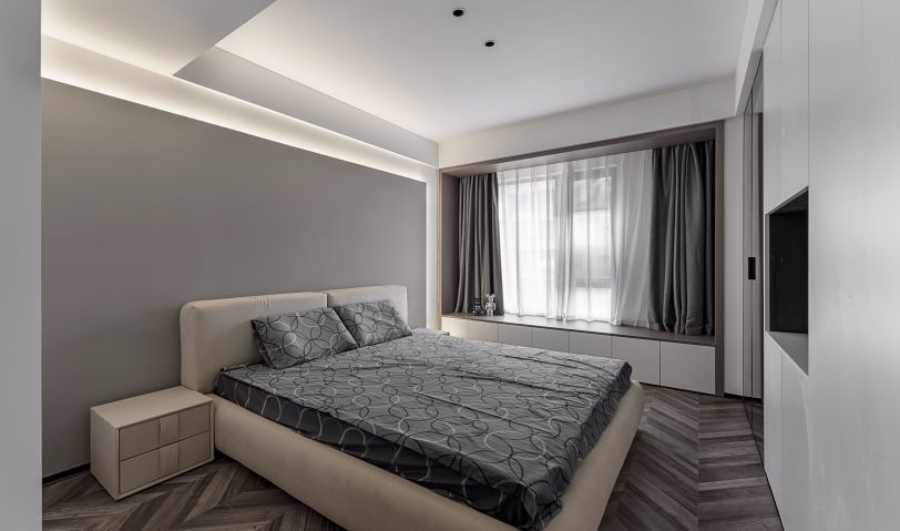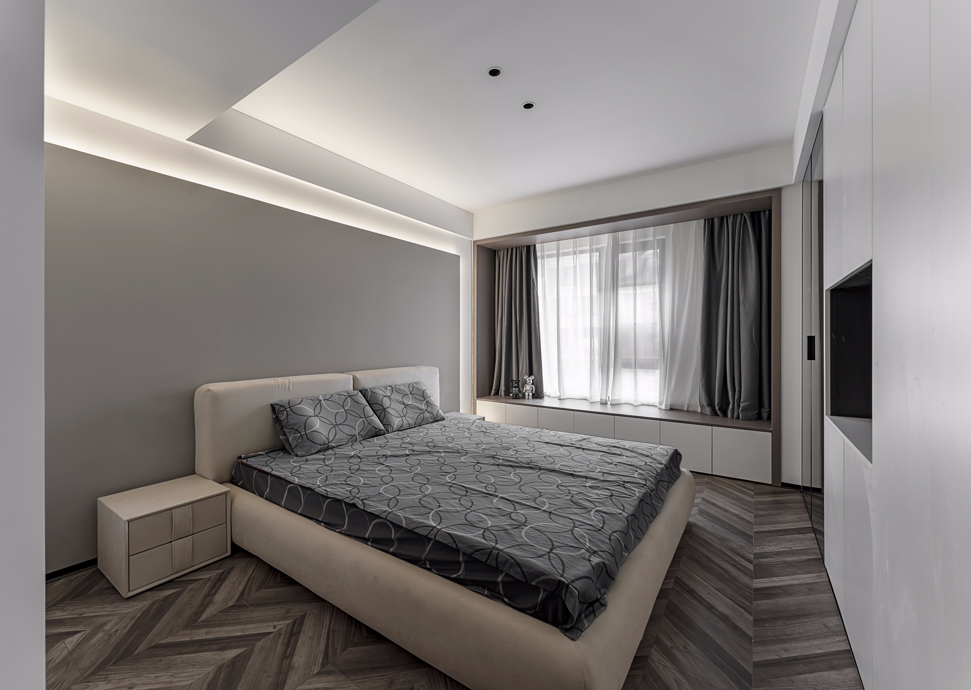 大面積留白灰色以補充的形式出現勾勒空間的輪廓,再以暖色提升空間的層次,布局用簡練的設計語言精簡的軟裝搭配來賦予空間靈魂。
