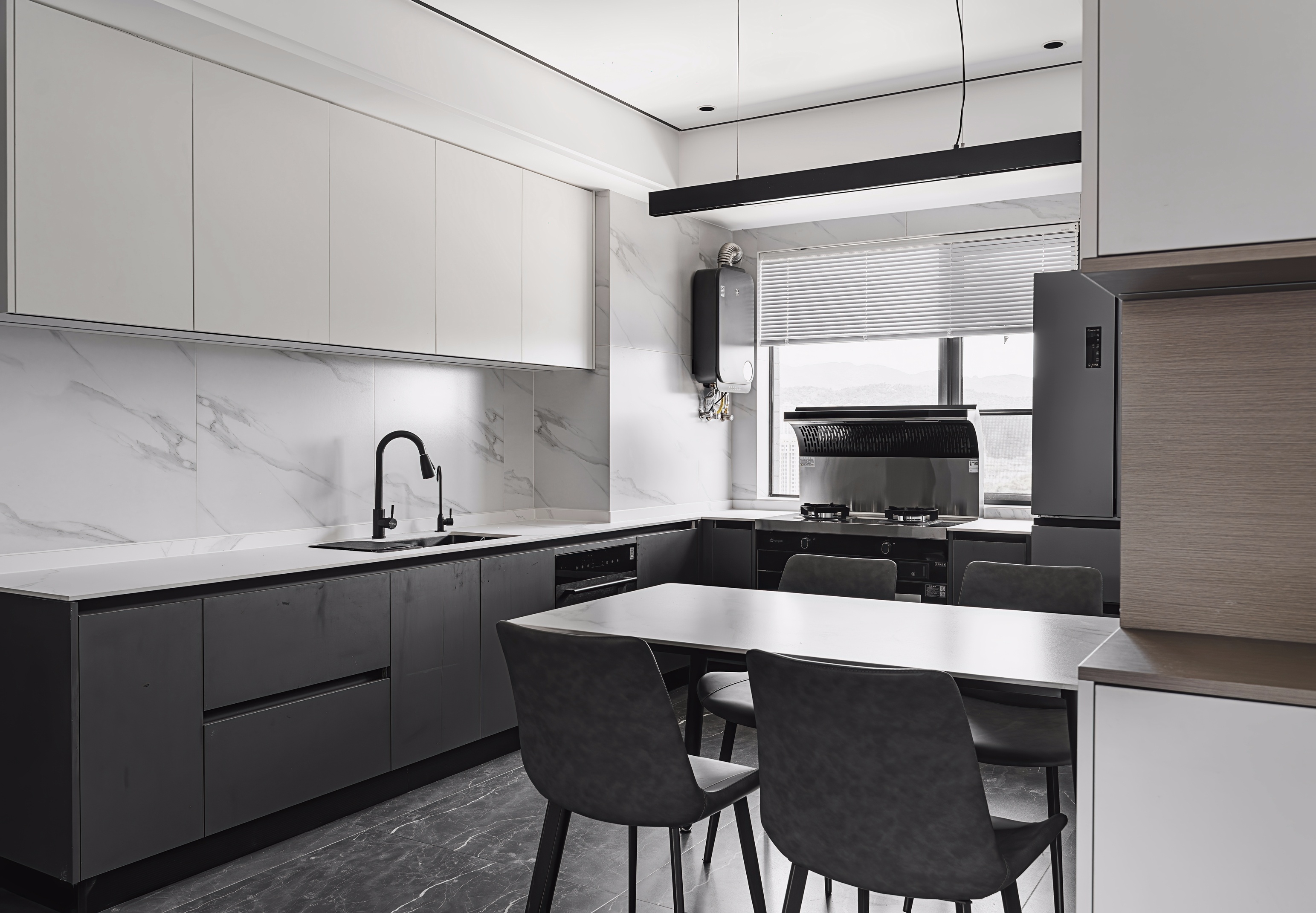 一邊是寬敞包容的客廳,一邊是通透明亮的餐廳,既自由開放又互相關聯,家是承受我們情緒的載體,用溫柔的姿態包容,木與石、黑與白,回歸家的煙火氣。