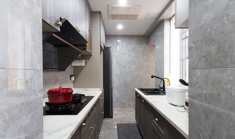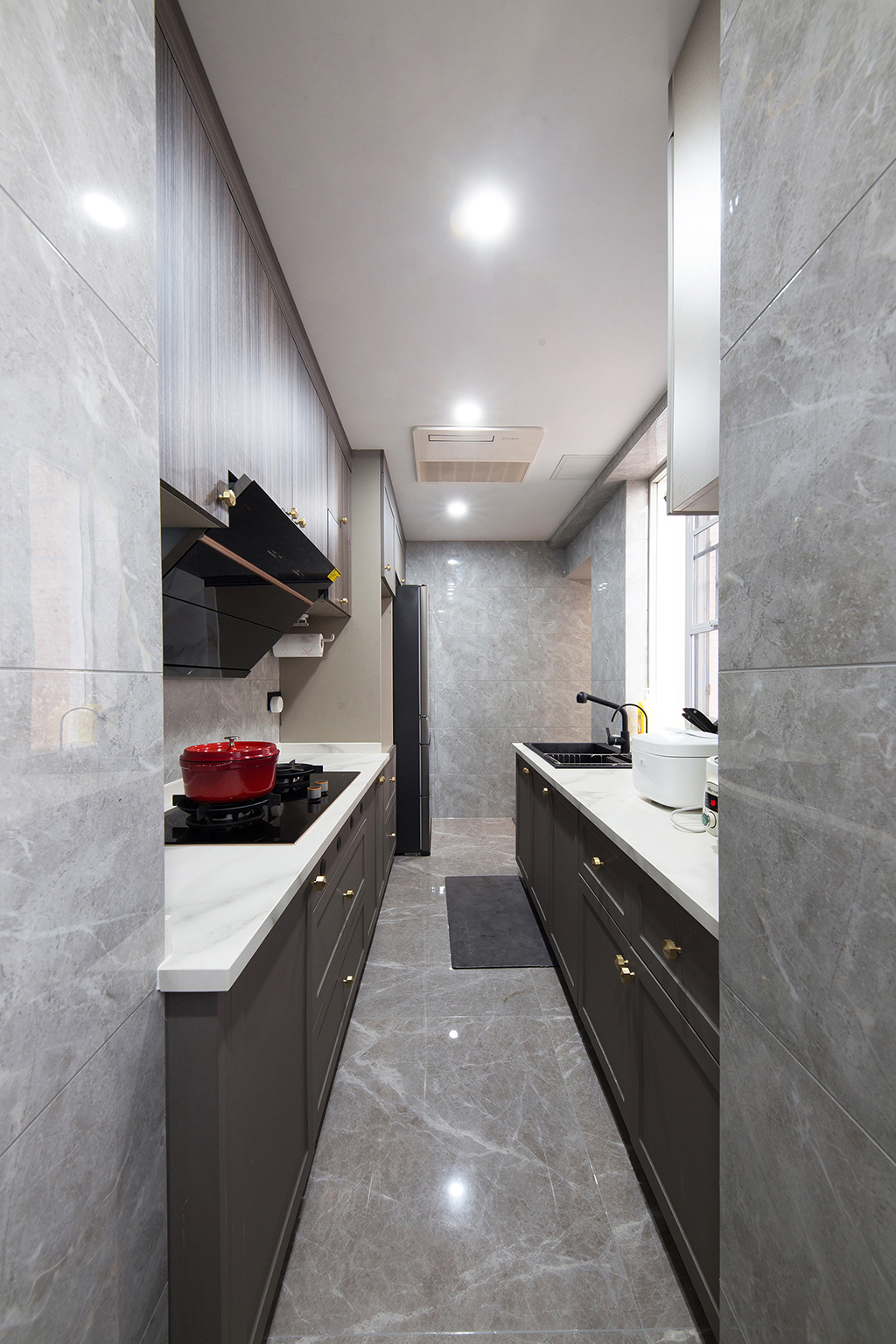 白色的熱氣從鍋中不停溢出,勾人的菜香飄渺……置身于黑、白、木色構(gòu)成的廚房,真是一場甜蜜且可口的邂逅。