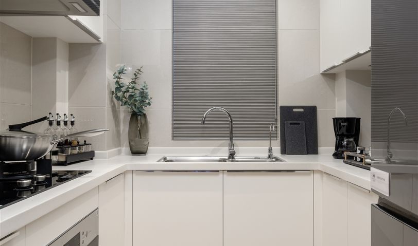 廚房空間更注重干凈與明亮,深色廚具與白色壁、櫥的色彩相互凸顯。不同于廚房本身帶來炊煙裊裊的生活氣息,這樣的搭配額外增加了一份格調美。