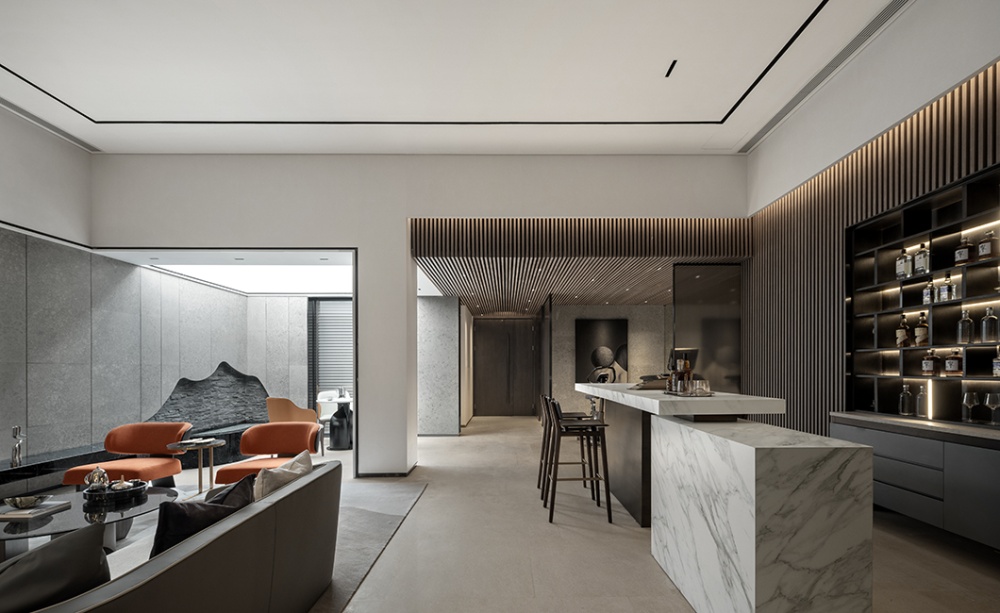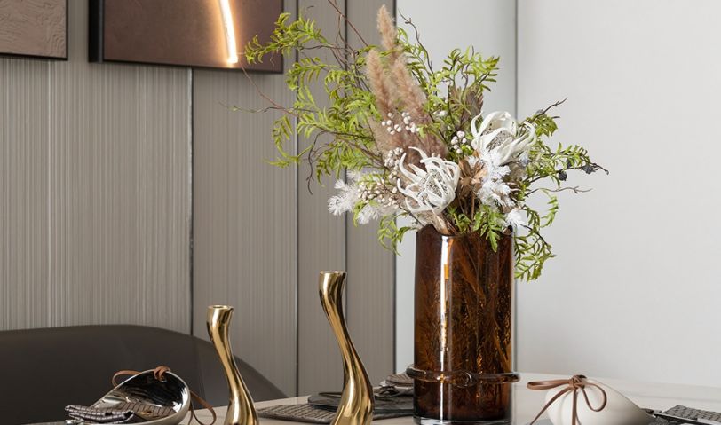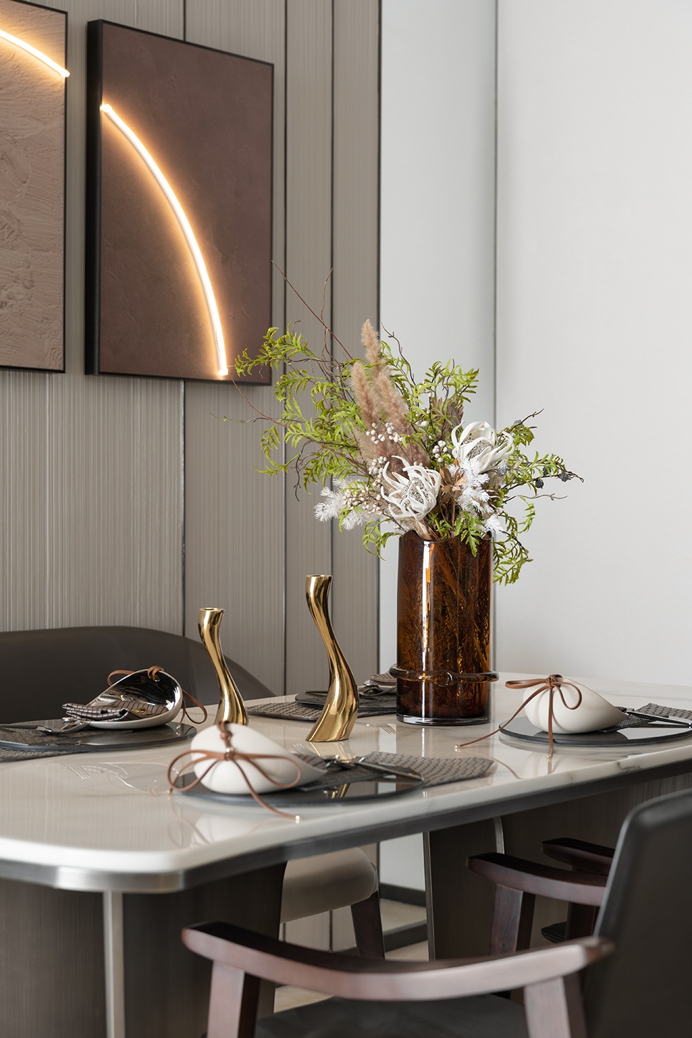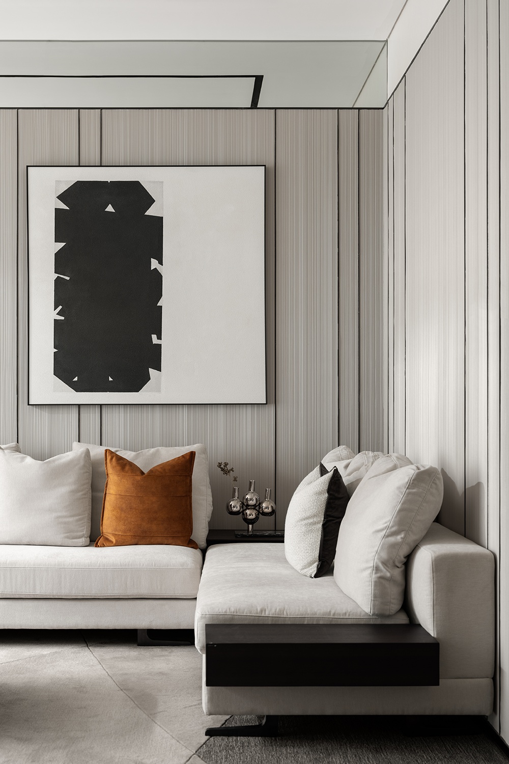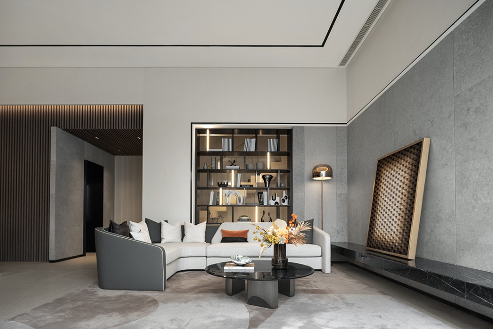 家居設(shè)計,是在編寫一個個家的故事。別墅客廳,將都市優(yōu)雅格調(diào)精煉為流暢的空間線條,棉麻、皮藝家私,自然承載典雅朦朧氣韻。