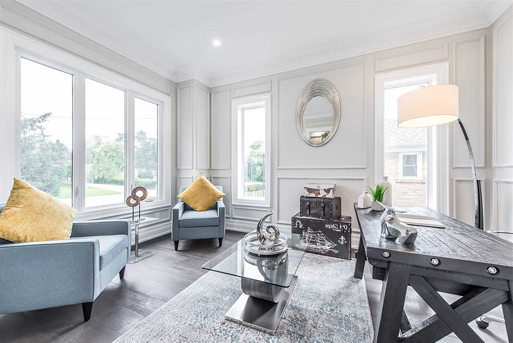 書房在全屋占據了很重要的地位,一整排的書柜非常有氣勢,超大的儲物空間,古舊的黑色木桌是全屋的家具亮點,搭配一旁的復古魚竿落地燈,更顯獨特。