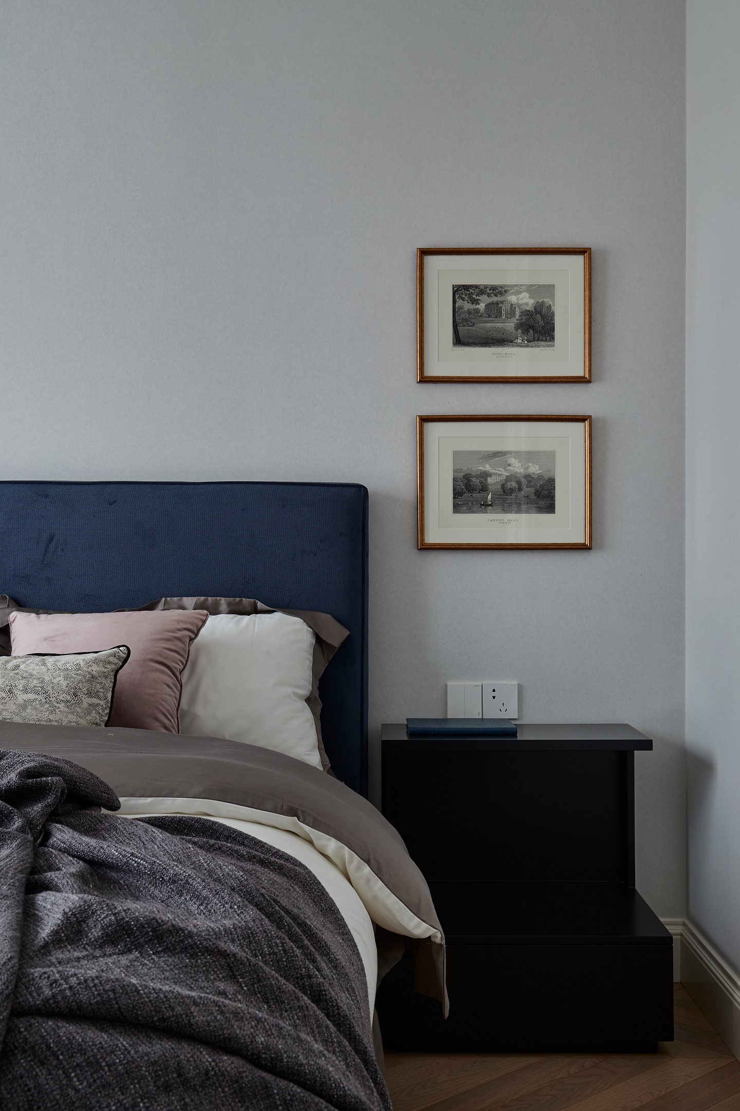 在這個低調淺灰色的空間里,充足的光線,沉穩的配色,平和、平靜的家具布置,床頭柜上兩幅懷舊的裝飾畫,記憶的閘門悄悄的打開了,像似執筆輕寫靈魂深處如夢似幻的思念。