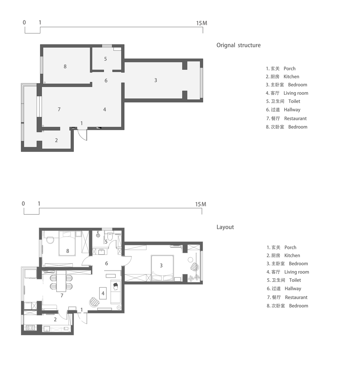這個設計的靈感來源于這座老式住宅區,實地考察的當天,在小區閑逛的時候偶然間看到了一件八十年代的老家具,是個帶有海棠花玻璃的小立柜,陽光透過海棠花造型的壓花玻璃,呈現一種若隱若現的迷離圖像,像油畫般真實而又模糊,那是一種虛虛實實的回憶。便想要打造一座遺世獨立的精致小屋,不懼風霜雷雨,像一朵海棠花一般,自在開放。