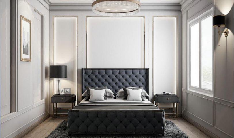 臥室的顏色冷暖結(jié)合,床頭背景墻簡(jiǎn)單的造型搭配金屬收邊條,光澤感像絲綢一樣的床品和窗簾,一冷一暖,搭配床頭點(diǎn)光源,陳設(shè)的魅力如此簡(jiǎn)單、直白。裝飾品的色彩和造型打破了空間的規(guī)律性,表達(dá)空間的豐富性和層次感。
