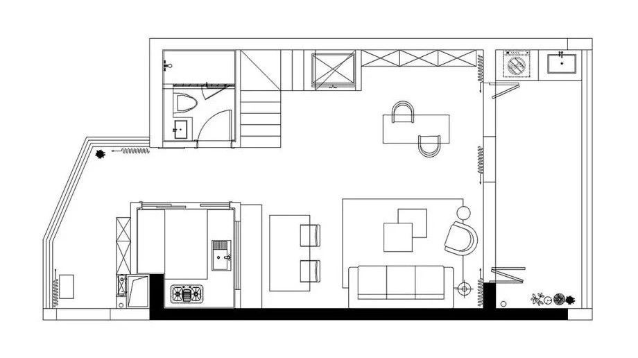 門廳空間為異形空間,面積充足,所以在右側依墻形狀設立收納柜