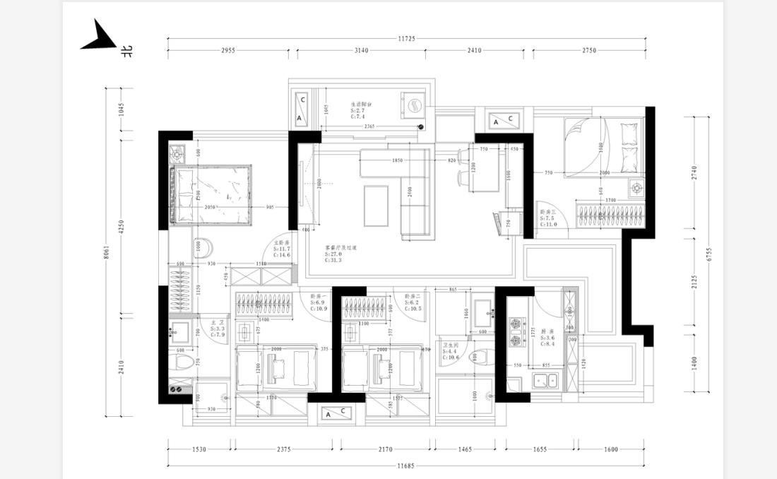 案例名稱 | 夢幻的家 | 戶型 | 四居室 | 案例面積 | 150㎡ |