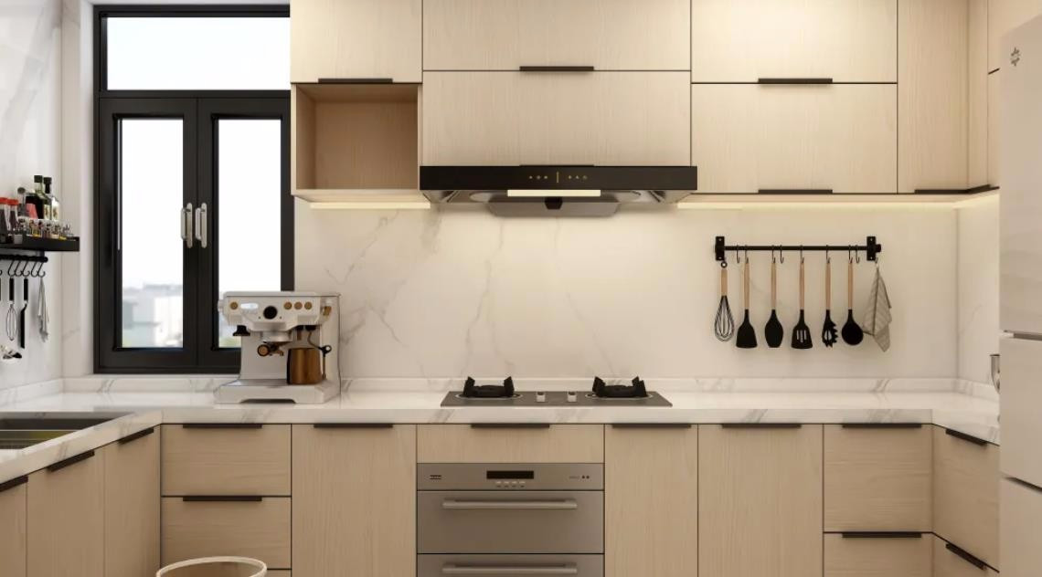 廚房上下櫥柜設計統一,整體簡潔,視覺上舒適