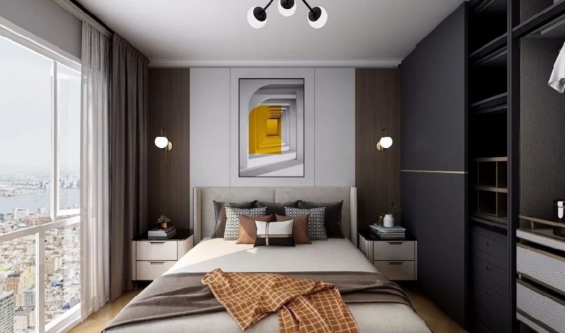 主臥的設計上采用對稱的是設計,推拉式的衣柜方便日常的儲物。