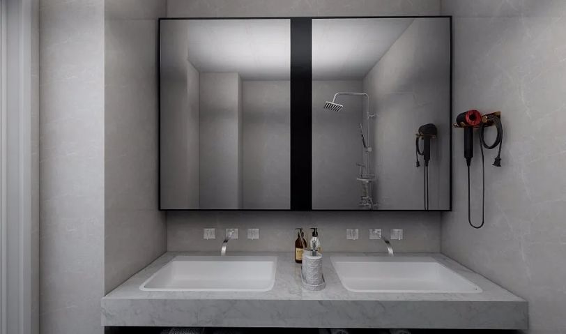 洗漱間在設計上滿足客戶的雙盆需求,離地式的浴室柜方便后期打掃衛生。