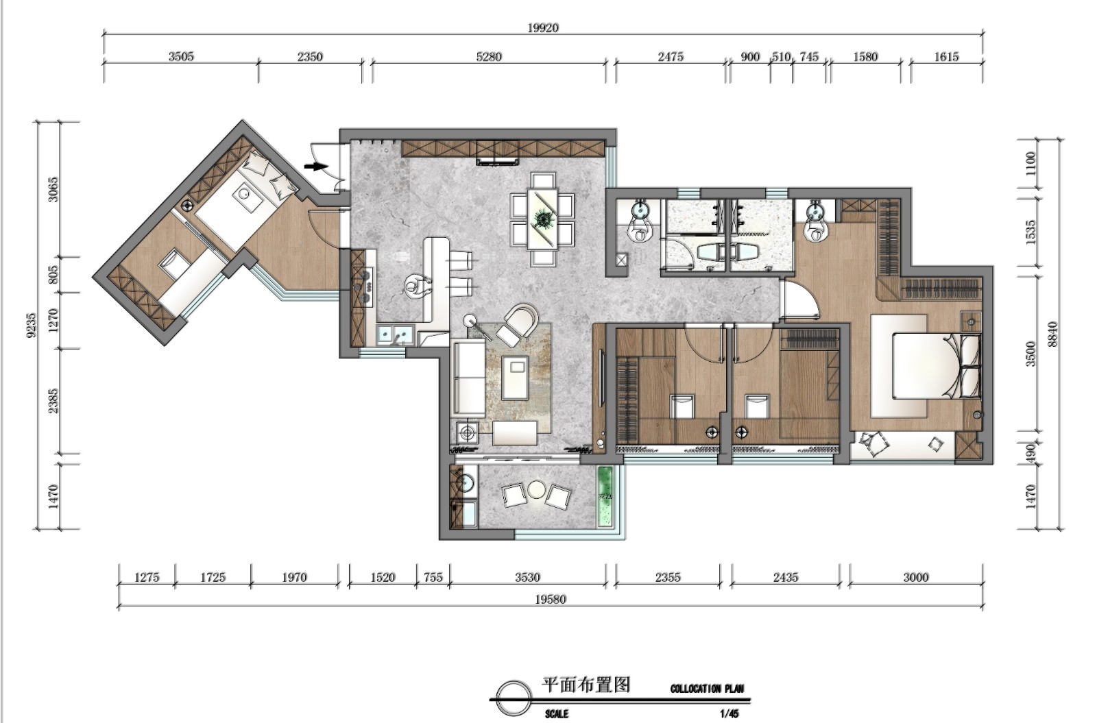 本案面積120平米,4口居家,夫妻兩人;兩個小朋友,業主比較追求生活的品質,不喜歡傳統的廚房,在空閑的時候比較喜歡看書,所以要一個書房。在空閑的時候比較喜歡看書,所以要一個書房。