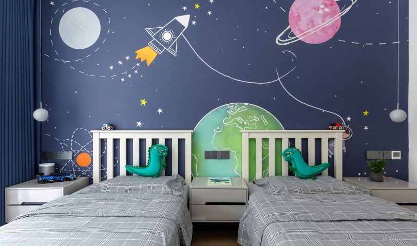 保證孩子活動的時候有足夠的空間。主要的活動空間包含客廳、餐廳、書房、廚房、南陽臺。