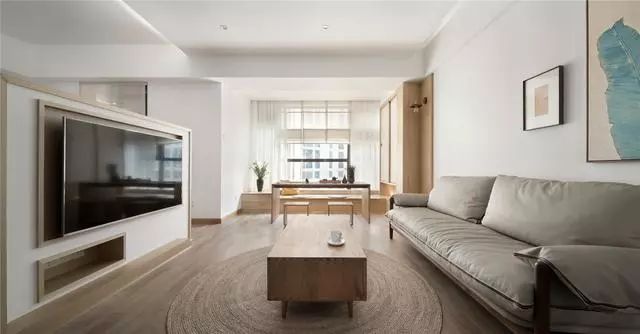 客廳設(shè)計(jì)以簡(jiǎn)約為主,沒(méi)有吊頂和吊燈,簡(jiǎn)單開(kāi)闊的客廳給人一種放松感。在這個(gè)空間中增加了木質(zhì),藤編和皮革等具有溫暖質(zhì)感的家具,讓簡(jiǎn)約有了溫度,低飽和度的色系也與日式的素雅不謀而合。