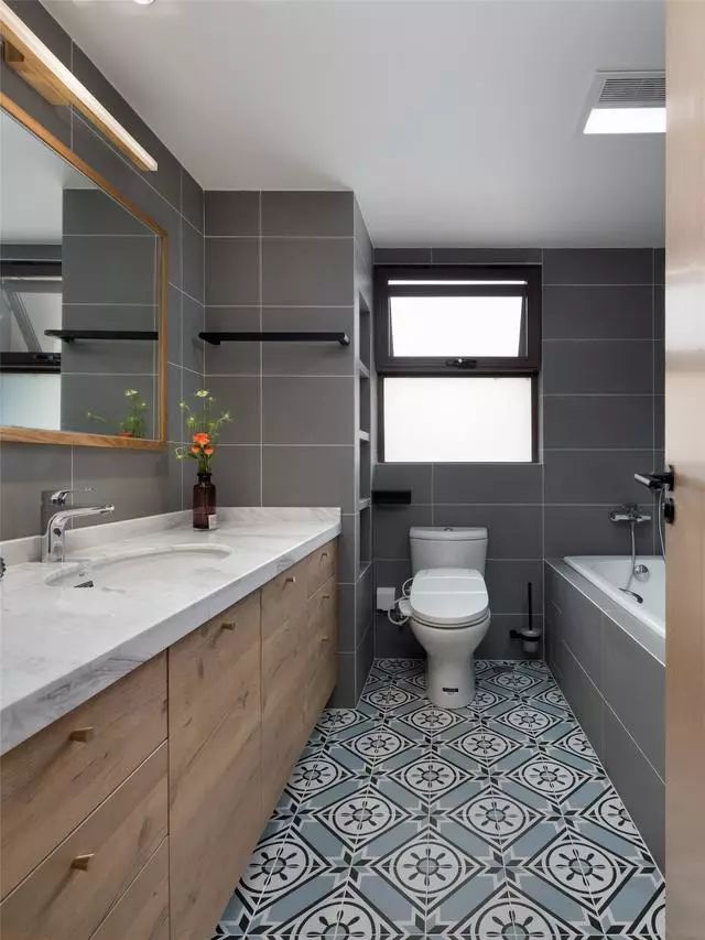 由于屋主想在次衛(wèi)放一個(gè)浴缸,雖然原本的空間也不小,不過(guò)也算不上多寬敞,于是設(shè)計(jì)師通過(guò)優(yōu)化空間布局,改成H型布局,放下了浴缸,將空間的利用率提升到極致。