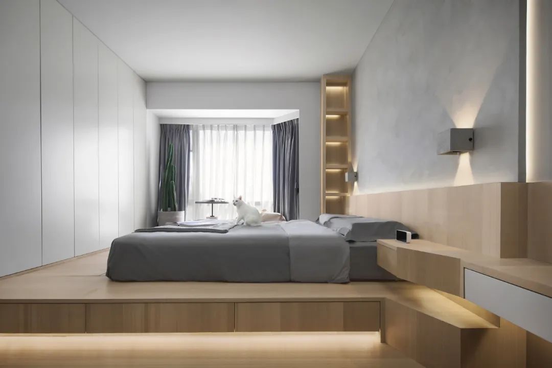 臥室空間整體的地臺設計,保證功能實用,還為空間增添些許趣味性。
