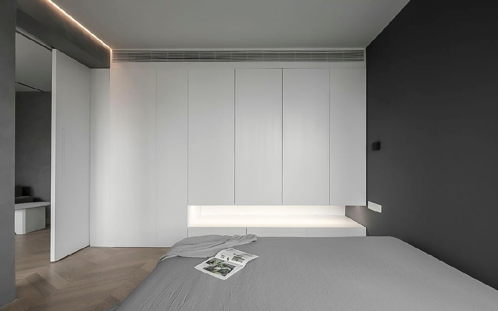 臥室門的選擇我們通過移門的方式滿足空間尺度上的變化,移門本身的屬性也可以更大化滿足屋主每***對于空間感官的變化,也更好的讓光可以肆意的流動于空間里...