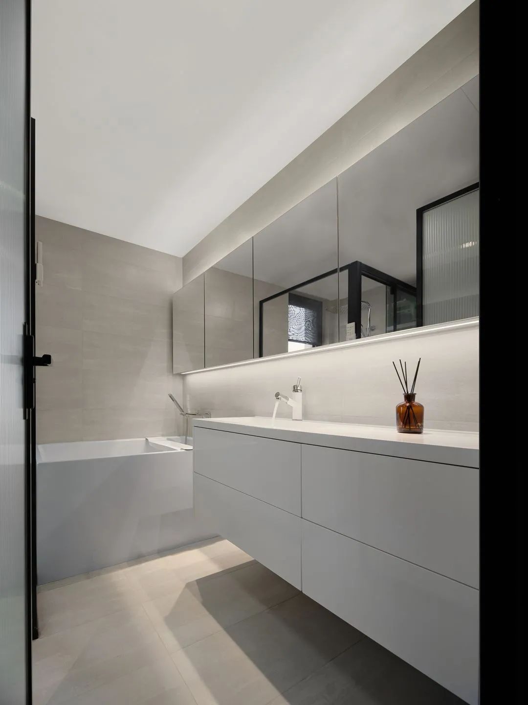 同時將主臥和次臥空間都進行了小幅度的壓縮,以擴大衛生間的使用面積,增加浴缸提升衛浴的舒適度。