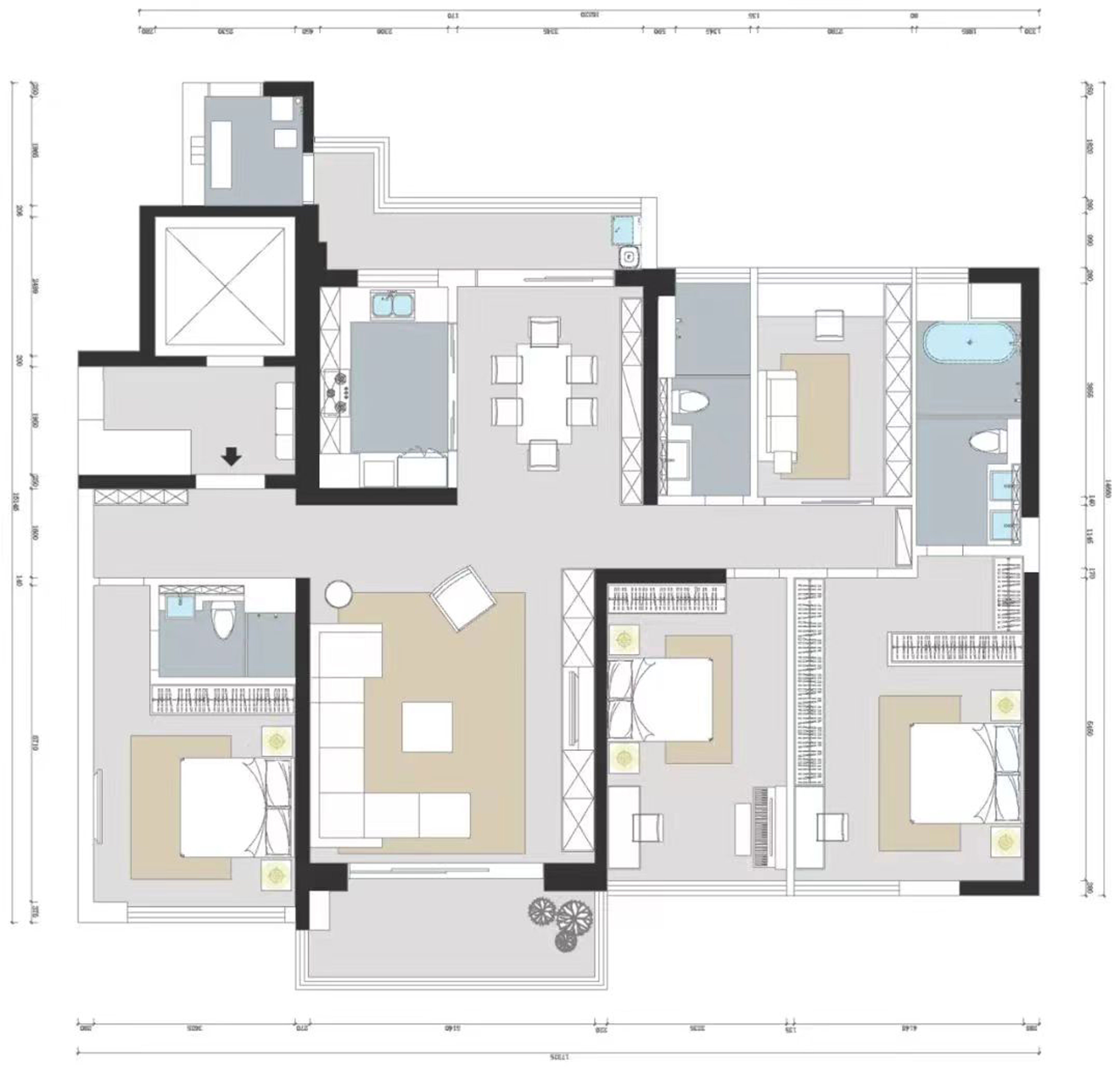案例名稱 | 精裝修改造 | 戶型 | 三居室 | 案例面積 | 225㎡ |