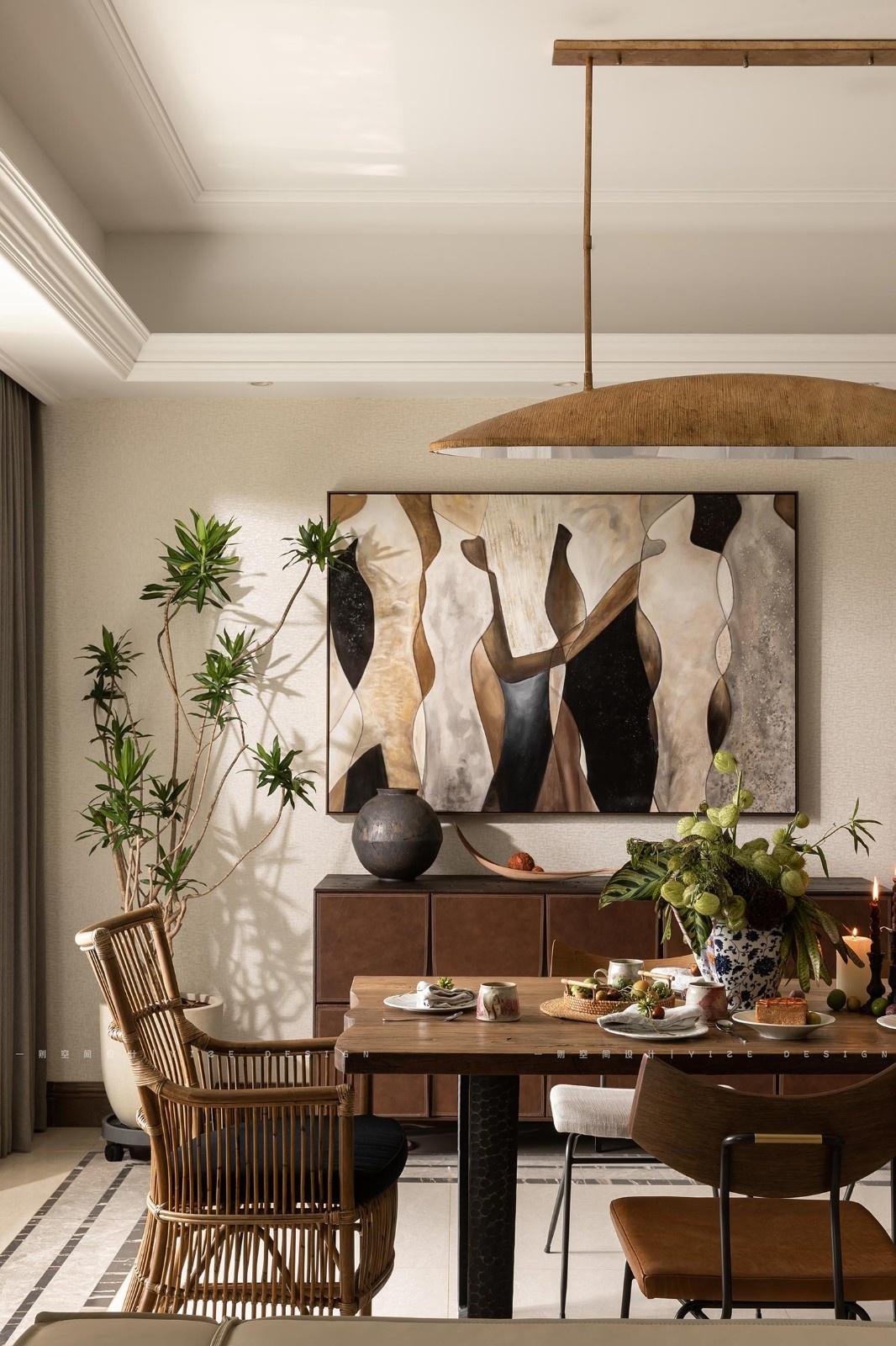 與背景藝術(shù)畫相映襯的是桌上香味四溢的美味佳肴