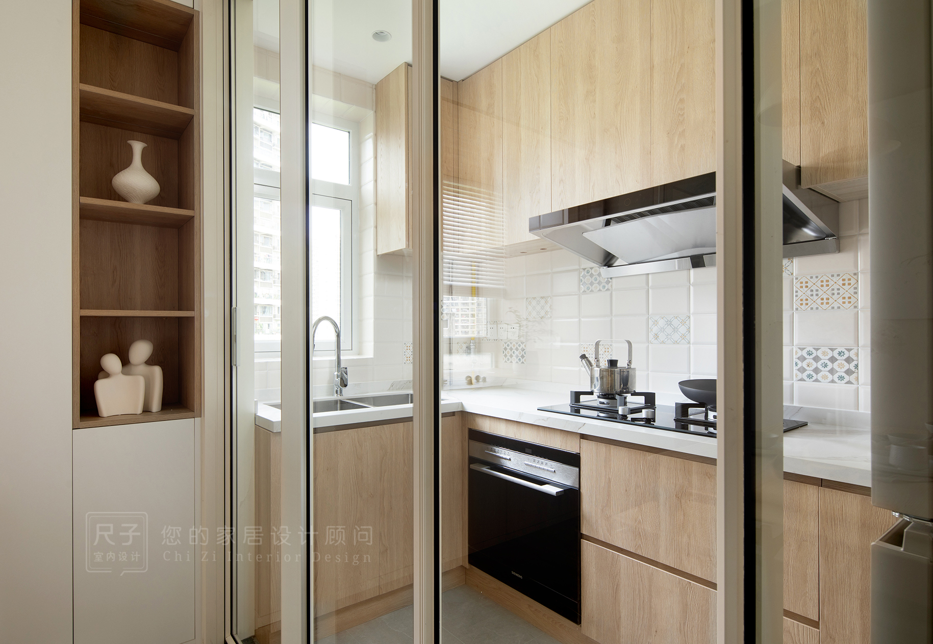 餐廳廚房以推拉門相隔,通透的玻璃材質(zhì)讓空間關(guān)系更加可變:開是自由暢通的一體式大空間,合是井然有序的不同功能區(qū)。
