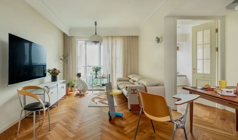 打開家門,暖意拂面而來。客餐廳完全敞開,相對于大戶型,小戶型其實更需要空間感。