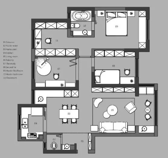 3. 縮小衛(wèi)生間的尺寸,干濕分區(qū),擴(kuò)大玄關(guān)的尺寸,視野開闊。