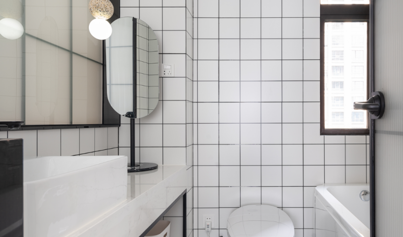 主衛(wèi)地面鋪小花磚避免單調(diào),洗手臺(tái)面足夠?qū)挸ǎ梢约孀鍪釆y使用,還布置了浴缸,方便泡澡放松。