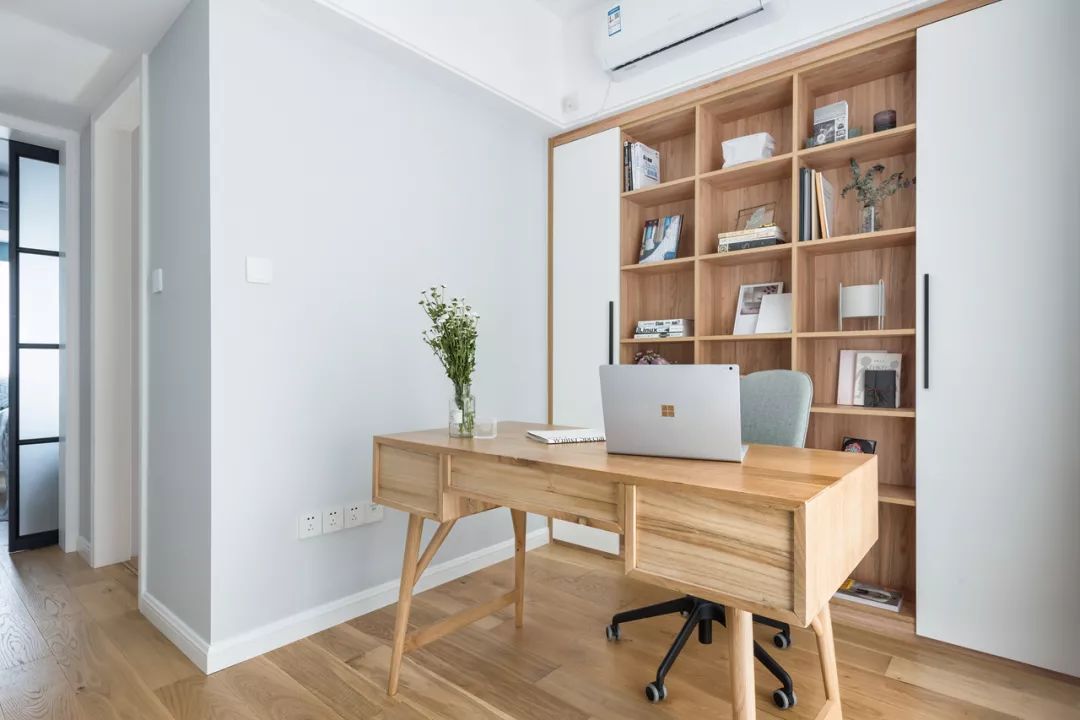 榻榻米方便收納,同時也有充足的采光,與櫥柜配套的小書桌,方便男女主人分開辦公。