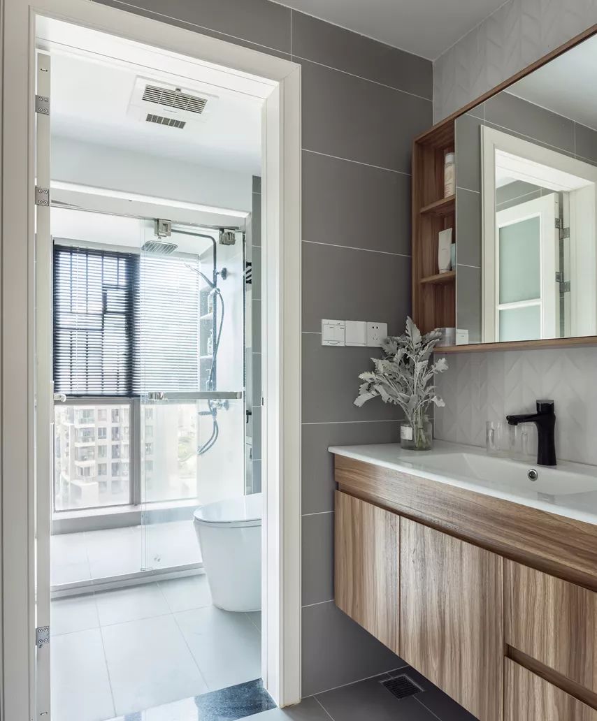 衛生間,干濕分離,淺灰色的墻磚與地磚,帶來優雅簡潔的質感。