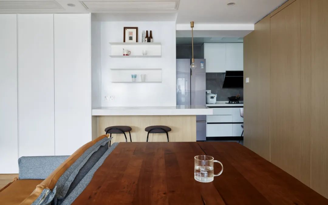 2. 靠近廚房處設(shè)置了滿足兩人簡餐的吧臺區(qū),作為廚房空間的延伸。