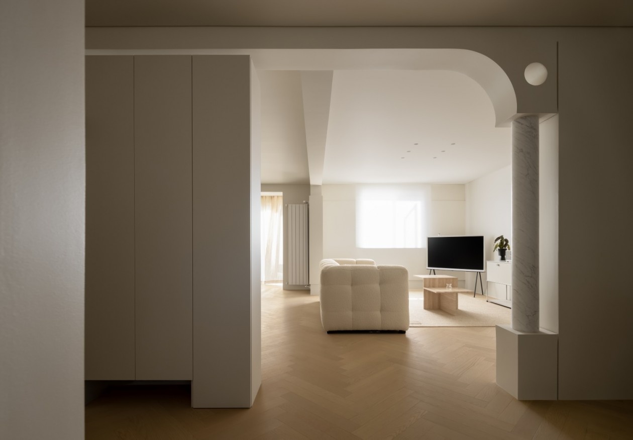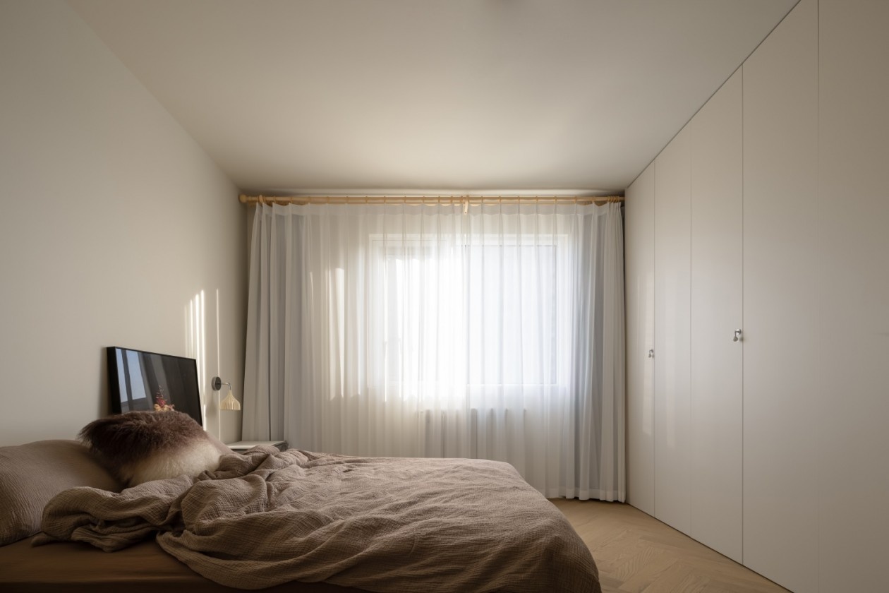 該住宅為一個老房改造項目,位于一個安靜、自然的街區。屋主為一對年輕的新婚夫妻,剛接觸時就表達了對于家居單品清晰的喜好,畫境電視、USM柜子等,于是我們和業主一起打造了一個理想的、藝術的居住空間。