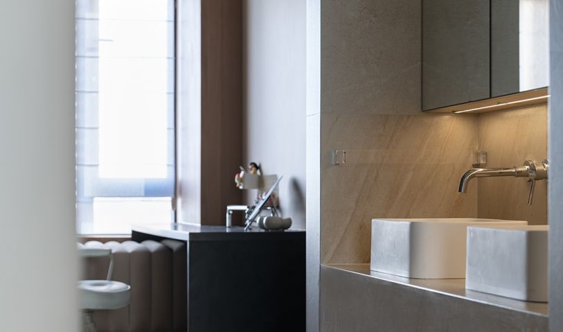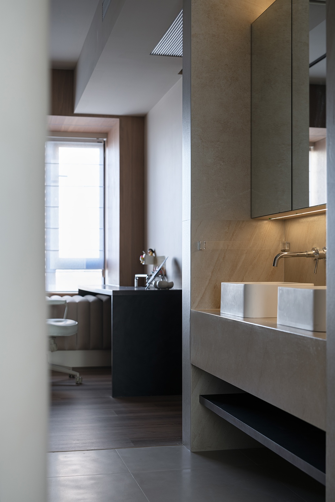 主臥以套房的形式規劃,南北相連波浪般的軟包造型,墻體內嵌的磁吸燈,燈光照射下是酣然入睡的夢 。